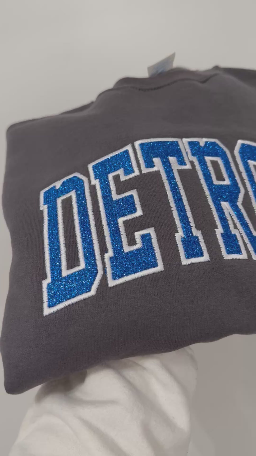 Detroit Glitter Embroidered Crew